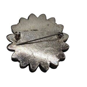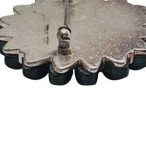 Vtg Green Floral Molded Glass Brooch Purple Rhinestone Silver Tone Pin Flower