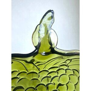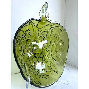 Vtg Green Indiana Glass Grape & Leaf Decorative Bowl Plate With Stem Handle READ