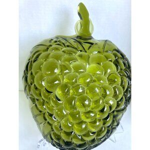 Elegant green glass plate Bowl with embossed grape and leaf pattern, featuring a distinct stem handle. A standout piece for home decor.