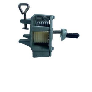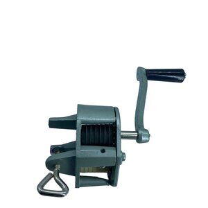 This heavy-duty, vintage kitchen hand crank is perfect for cutting green beans and grinding herbs. Made of durable gray steel, it can be securely clamped to any surface for easy use.