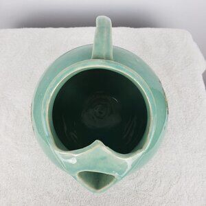 Beautiful vintage green pitcher in excellent condition. The pitcher is 8-1/2" tall and heavyweight pottery. Beautiful design.