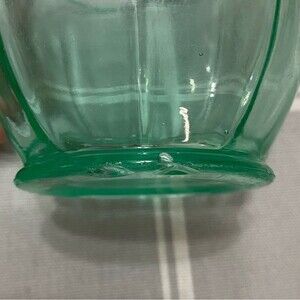 Vtg Green Uranium Vaseline Depression Glass Sugar Bowl & Creamer Set Glow Green