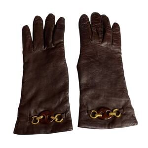 Features: vintage; pull on; driving gloves; leather; wool lined; attached buckle clasp at wrist; solid neutral color; classic; casual or dressy; fall; winter; spring; feminine; sexy; old money; preppy; quiet luxury