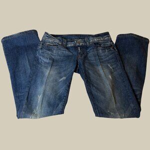 • Bootcut Y2K Distressed Double Denim Hippie Mid Rise