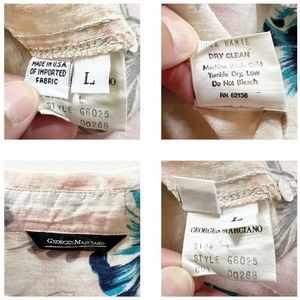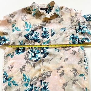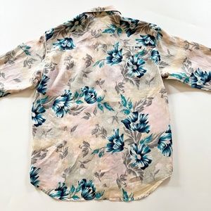 Vtg Guess Georges Marciano Hawaiian Floral L/S Shirt Ramie Peach Pink Teal Men L