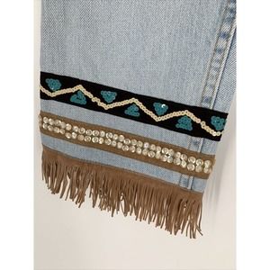 Vtg Guess Jeans 90’s Crop Fringe Embellished Festival Hippy Boho Sz 26 NWT