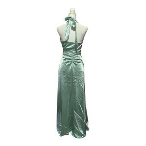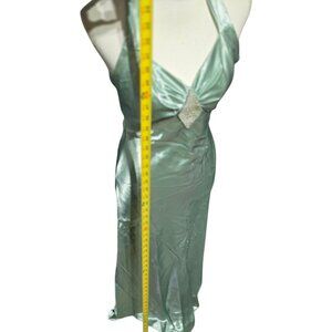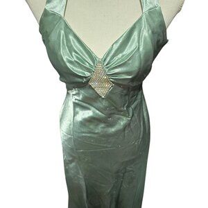 This dress is so minty fresh it might just steal the spotlight at a toothpaste commercial. A satin masterpiece with rhinestone flair for dazzling moments.