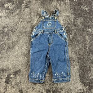 Vtg Gymboree Embroidered Denim Jean Overalls Girl XS 1-2 Years Floral Pockets. **No flaws noted; refer to all photos for condition and sizing.