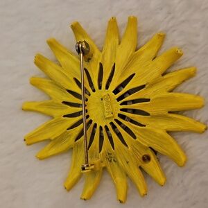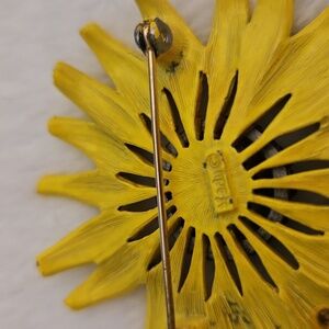 Brighten your outfit with this vibrant yellow sunflower brooch. Perfect for adding a touch of nature to your look.