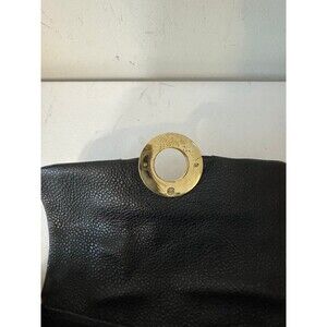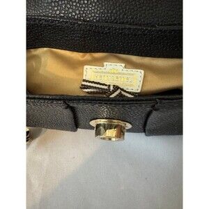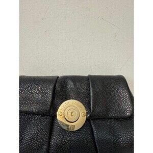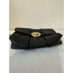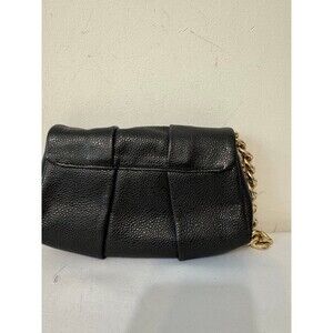 Black pebbles leather foldover clutch w chunky gold chain strap and hardware. This bag is in excellent condition. There are some scratches on the front closure hardware. Please see pics.