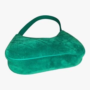 Vtg H&M Emerald Green Quilted Fuzzy Plush Hobo Handbag Lined Crescent Gold Zip