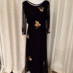 Black Mesh Maxi Dress with Floral Embroidery