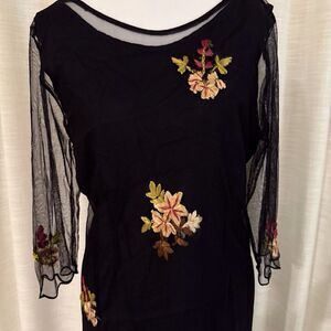 Vtg HOPELESS ROMATIC Black Mesh Dress Sz M Whimsy Fairy Goth Embroidered Flower
