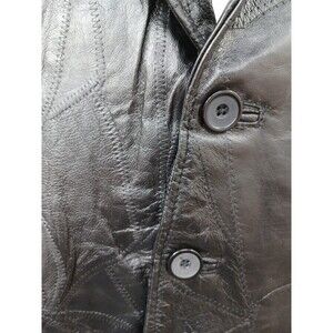 Vtg Haband Executive Collection Mens Leather Jacket Black Patch Work Sz L