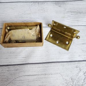 This vintage Hager Hinge Co. No 1150-DB half mortise butts hinge set is the perfect addition to any door in need of sturdy and stylish hardware. The hinges measure 3 inches in length and come with all necessary screws. Made of durable brass with a dull finish, these hinges will securely hold your door for years to come. The brand, Hager, is known for their quality hardware and this set is no exception. The brass material and color make it a versatile option for any door and décor. Add this NOS (New Old Stock) hinge set to your collection today!
