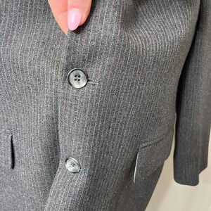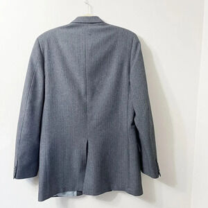 Haggar Mens Gray Blazer 40L Lined Magic Stretch Pockets Single Breasted Tuxedo Striped Sport coat Measurements taken while flat: 18.5 shoulder length, 22" pit to pit and 33 body length