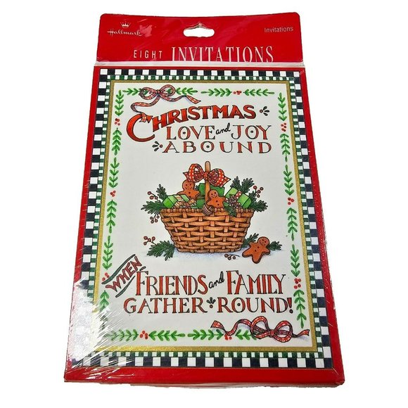 Vtg Hallmark Christmas Invitation Cards 8pk w/ Envelopes NEW Love Joy Basket