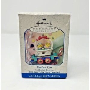 Vintage Hallmark Keepsake Ornament 1999 Flatbed Car Cottontail Express Series #4. Possible NEW old stock, but has a crease/dent on front of box and shelf wear on the bottom edges. Ornament (approximately 2 inches high) inside in excellent condition.
