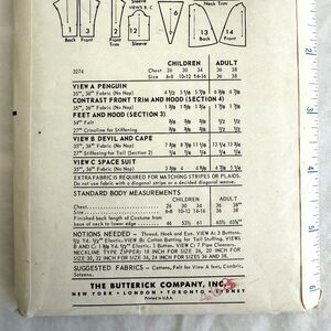 Vtg Halloween Butterick 3274 Costume Sewing Pattern Penguin Devil Alien 10-12