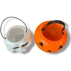 Vtg Halloween Candy Pails Empire Pumpkin Jack O Lantern Skull Blow Mold Buckets