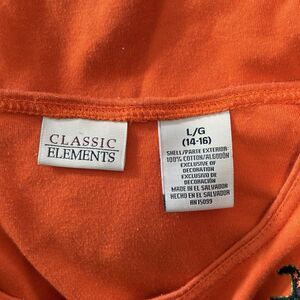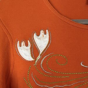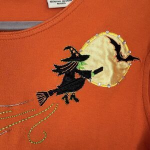 Vtg Halloween Long Sleeve Top Women Large Orange Embroidered Ghost Witch 90s Y2K
