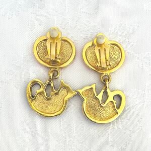 Vtg Halloween Pumpkin Black Cat Dangle Clip-on Earrings Enamel