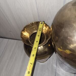 Vtg Hammered Brass Vase Set With Decorative Braided Rope Urns Nautical MCM Victorian French Provincial Hollywood Regency Gothic