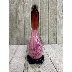 This vintage hand-blown glass pelican figurine is a stunning decorative piece. Elegantly crafted, it features a fish in its beak and functions as a unique paperweight, ideal for collectors and art glass enthusiasts.
