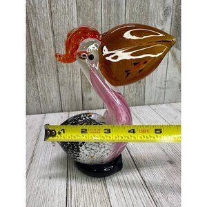 Vtg Hand Blown Art Glass Pelican Bird w/ Fish Figurine Paper Weight 6.5" Tall
