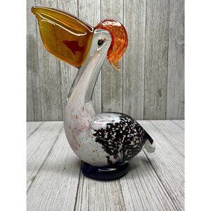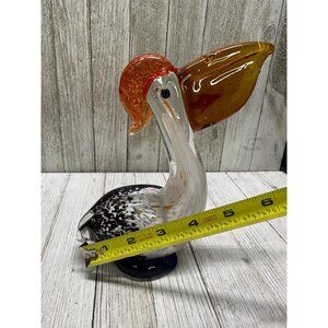 Vtg Hand Blown Art Glass Pelican Bird with Fish Figurine Paper Weight 7" Tall