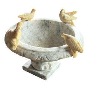Vintage Hand Carved Italian Marble Pedestal Bird Bath/Fruit Bowl with 4 Removable Cast Resin Doves