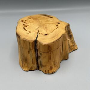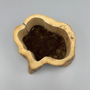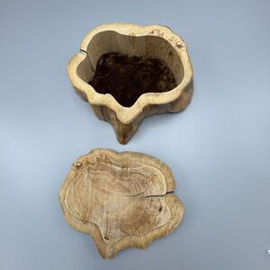 Vtg Hand Carved Tree Stump Trinket Box Removable Lid Mancave Cottagecore Deer