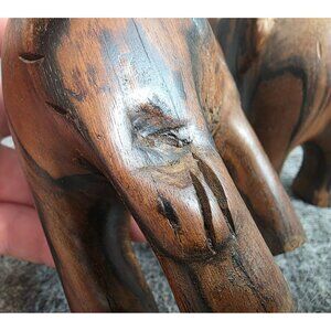 wooden elephant figurines, hand carved elephants, rustic home decor, animal carvings, safari collectibles, 6 inch wood elephants, Vtg wooden decor