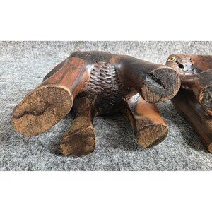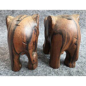 Vtg Hand Carved Wooden Elephant Figurines Set Of 2 Rustic Home Decor