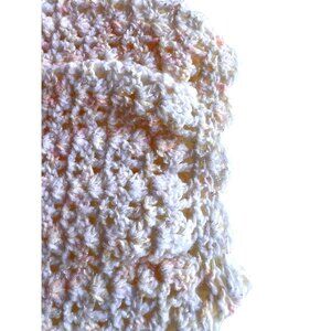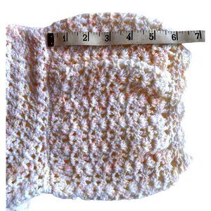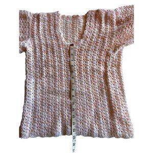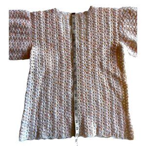 Vtg Hand Crocheted Top Women’s Puff Sleeves white Yellow Peach Glitter Yarn
