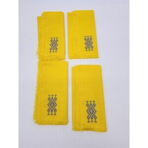 Vtg Hand Embroidered Applique Table Runner 4 Placemat 4 Napkin Set Yellow cloth