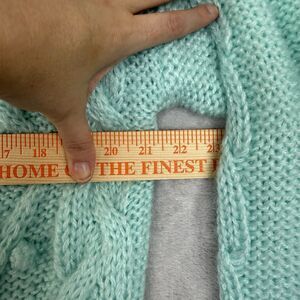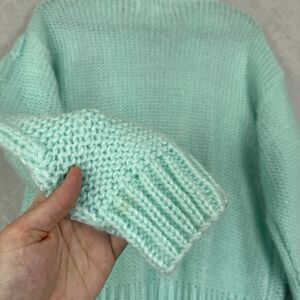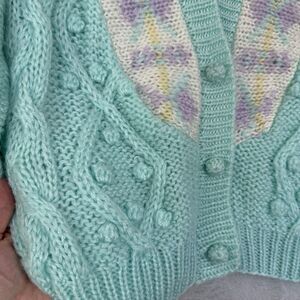 Vtg Hand Knit Cardigan Sweater Womens Medium Pastel Aqua Chunky Grandma 90s 80s