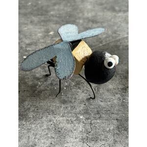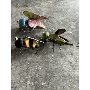 Vtg Hand Made Butterfly Bumblebee Dragonfly Wood & Metal Folk Art Figurines