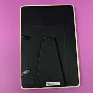 This charming vintage Carr photo frame features a botanical illustration of the Iris Siberica (Siberian Iris) in delicate hand-painted detail. Produced in 2000 by Burnes of Boston, this frame fits a 3.5" x 5" photo and includes both the common and botanical names of the flower on the front. The easel back allows for tabletop display.