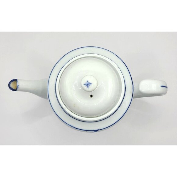Vtg Hand Painted China Traditional Blue & White Koi Fish Teapot & Bowl Set