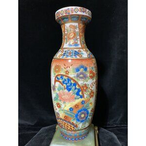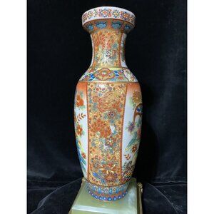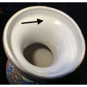 Vtg Hand Painted Chinese Ceramic Vase Rose Medallion Floral Gold Trimmed