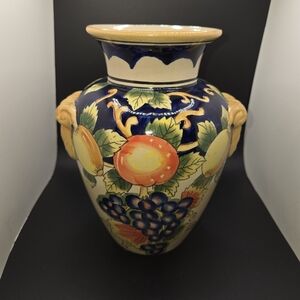 Vtg Hand Painted Deruta Italian Porcelain Vase - Grapes Lemons