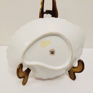 Vtg Hand Painted Lefton Leaf Shaped Gold Rim Purple Floral Candy Trinket Dish