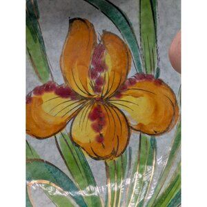 Vtg Hand Painted Numbered Pottery Candy Dish Bowl Handles Orange Iris Italy 8"