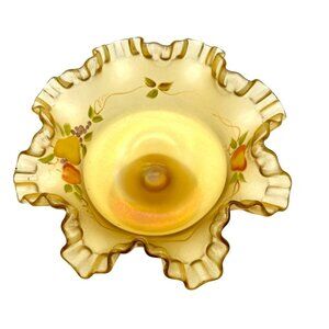 • Style: Candy Dish with crimped edges, compote, hand painted with fruit and floral design, signed