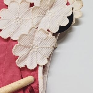 This vintage pink kids dress features charming white floral accents on the shoulders, perfect for special occasions. Crafted with care, it offers both style and comfort for your little one. Please review the photos, there is staining and the white areas are yellowing. I'm thinking this dress is 50's/60's and possibly cotton. Hem could be released for extra length. Smoke-free. Machine wash cold and dry low. Measurements in photos. Color hues vary across devices.