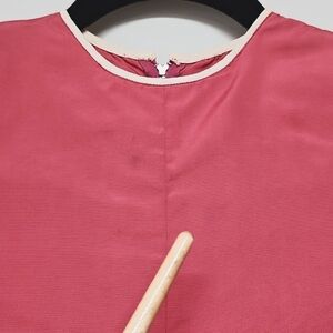 Vtg Hand Sewn Pink Dress White Floral Accents Box Pleats Size 8 ⚠️STAINED⚠️