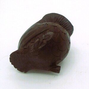 Vtg Hand-Carved Wooden Owl Dark Brown Figurine Deco Mini 2"