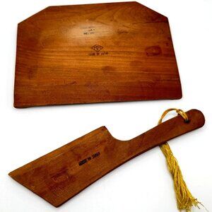 This vintage hand-painted wooden crumb catcher set features a floral design with a tassel handle. A functional yet elegant addition to dining areas.