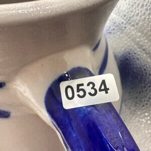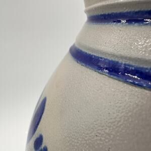 Vtg Handarbeit Salt Glaze German Water Jug Pitcher Art Pottery Gray Blue Cottage